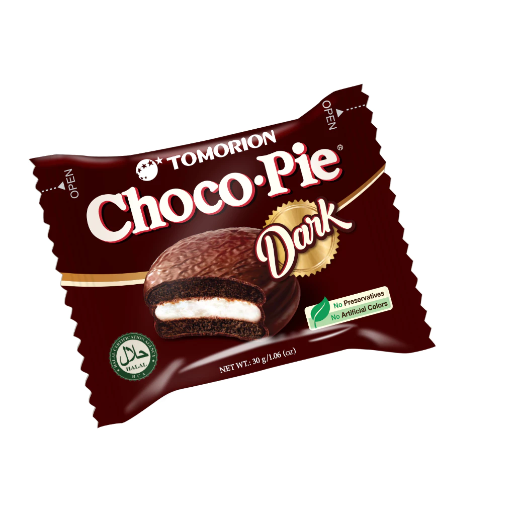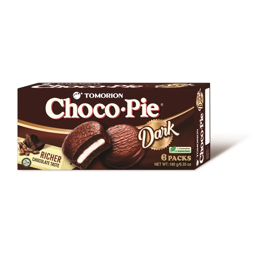 Tomorion Choco Pie Dark with outstanding cocoa content (up to 70%). The extremely passionate and rich cocoa flavor covers the tip of the tongue. Choco Pie Dark is made exclusively for chocolate fanatics, especially young people who love the strong explosive flavor of cocoa.